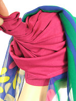 Bei einigen Modellen ist geschmeidiges Jacquardgewebe verarbeitet, das aufgrund seiner Struktur fülliger ausfällt, als die sonst verarbeiteten zarten Chiffontücher. Der Vorteil: Es passt auch in der kalten Jahreszeit als Accessoire zu Jacke und Mantel.