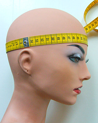 Wenn Sie ein Bandmaß haben, legen Sie es wie auf dem Foto gezeigt um den Kopf.